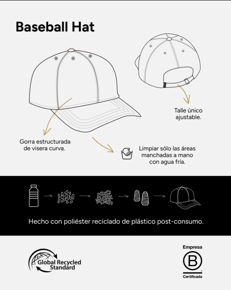La tela y la visera están hechas con plástico reciclado post-consumo.