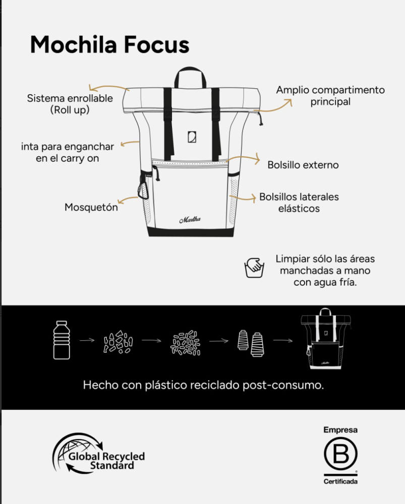 La tela está hecha con plástico reciclado post-consumo.